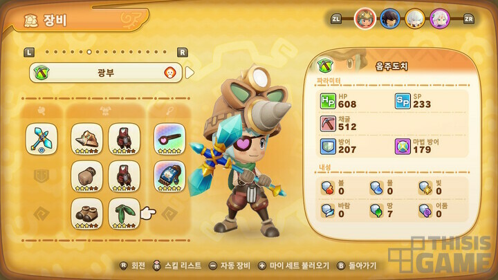 이 제작계 미니게임의 공략에는 빠른 손놀림(?)도 필요하지만, 스탯의 수치적 성장도 필요한데 이를 해결하는 방식도 재밌다. 전투, 채집은 필드에서 반복하는 것으로 상대적으로 쉽게 성장할 수 있지만, 제작은 낮은 단계의 아이템을 많이 제작하는 것만으론 성장에 다소 한계가 있는데, 이때 필요한 게 같은 직업을 가진 '동료'의 힘을 빌리는 것이다. 후반엔 파티원으로 함께 데리고 나가 전투나 채집을 진행해도 동료의 레벨이 빠르게 오르니 직업 동료의 성장도 신경써보자.