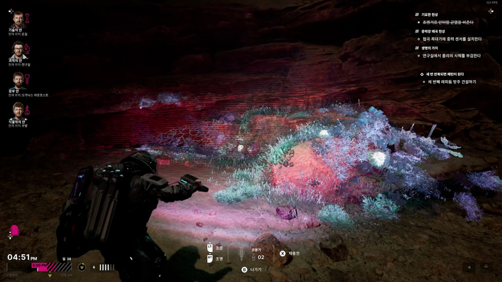 대신 채굴 시설 등을 기지에 연결하면 빠른 이동 지점으로 쓸 수 있고 탐험에 필요한 수트 배터리도 충전할 수 있어 탐험에서 번거로운 면이 전혀 없습니다. 채굴 시설을 지을 수 있는 지점은 스캔으로 찾아내고 기지까지 연결하는 데 최적의 경로를 만들어내는 등의 과정은 퍼즐 풀이 같은 재미와 성취감을 주기도 하고요.