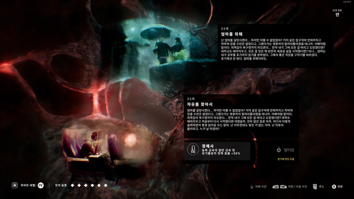 이번에는 특히나 '생명의 복제'라는 극도로 윤리적인 주제를 다루는 만큼 철학적인 선택들이 주어집니다. 얼터들과 이룬 작은 사회에 불화가 없도록 해야 하는 한편, 지구에 있는 사람들과 살아서 지구로 돌아갔을 때의 미래까지 고려해서 결정을 내려야 하니 더욱 쉽지 않죠.