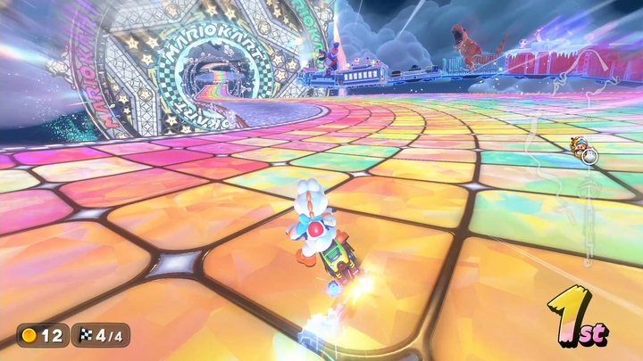 특히 초대작부터 시리즈마다 스페셜컵의 마지막 코스로 대미를 장식하는 '무지개 로드'는 그야말로 역대 최고로 멋집니다. 달리면서 몇 번이나 감동하기도 해서 개인적으로는 이 코스를 달리기 위해 게임을 구매해도 될 정도라고 봅니다.