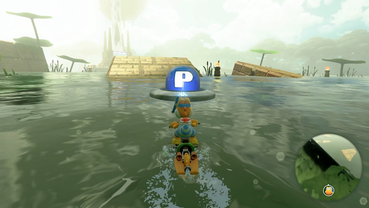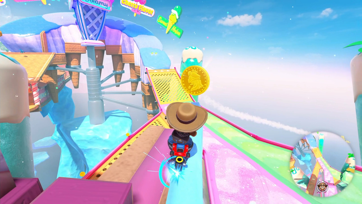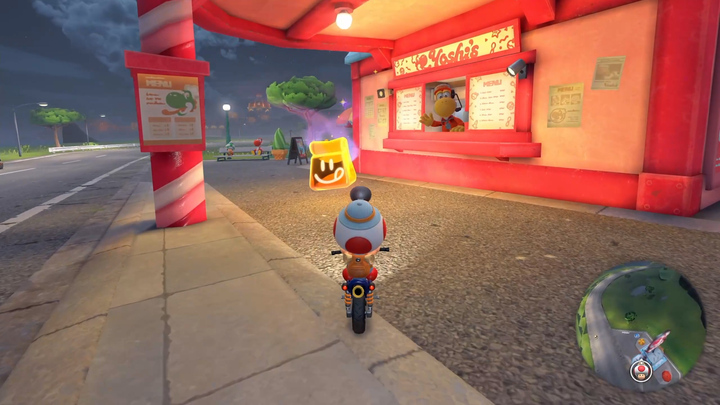 오픈월드를 채우는 콘텐츠도 여러 가지가 있습니다. P 스위치를 누르면 시작되는 챌린지 코스, 각 지역의 수집 요소인 물음표 패널, 도전적인 경로에 놓여 있는 피치 메달, 닌텐도의 황금고블린이 된 톳텐과의 술래잡기 등 레이싱 코스 외에도 구석구석을 달릴 가치가 있죠.