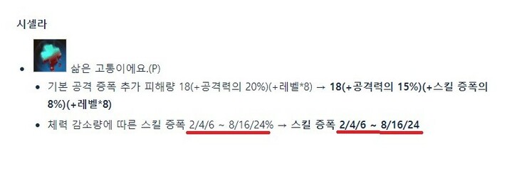 첨언하자면, 커뮤니티에 저희가 스킬 증폭 변경 당시 1을 단순히 1%로 바꿨다는 그런 이야기가 있는데, 시셀라의 경우에는 당시 패시브가 너무 좋아서 너프도 하는 김에 수치적으로도 깔끔하게 정리하려고 그렇게 했던 것이다. 그런 부분이 너무 '님블뉴런은 수학 못 한다'라는 밈으로 되어 슬프다. 하지만, 당시 밸런스에 큰 문제가 생겼던 것은 분명하기에 어떤 말을 한 들 저희의 변명인 것은 맞다.
