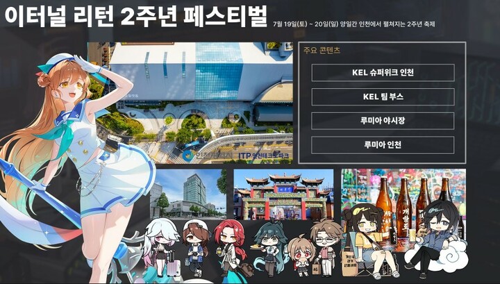 7월 10일 '서머타임'이라는 대중적인 멜로디를 가진 이벤트 OST가 공개된다. 20일에는 인천시와의 협력을 통해 다양한 현장 이벤트가 진행되며, 2주년을 맞이해 7일 동안 접속 보상으로 특별 로비 일러스트와 토큰이 제공된다. 2주년 로비는 특별히 픽셀 아트로 만들어졌으며, 2주년 기념 이모티콘은 '위피' 작가와의 콜라보레이션으로 만들어졌다.