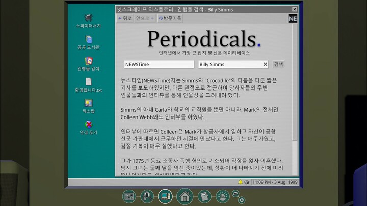 극단적으로 단순화하면 키워드 수집과 검색이 게임의 전부라고 할 수 있다. 게임의 무대도 작은 방 안의 컴퓨터 화면이 전부다. 조사와 추리를 핵심으로 하는 게임 중에서도 매우 정적인 편이다. 그럼에도 키워드 검색을 통해 끊임없이 새로운 자료를 발견하고, 확실한 정보를 바탕으로 가계도를 채워가는 과정은 흥미롭다.