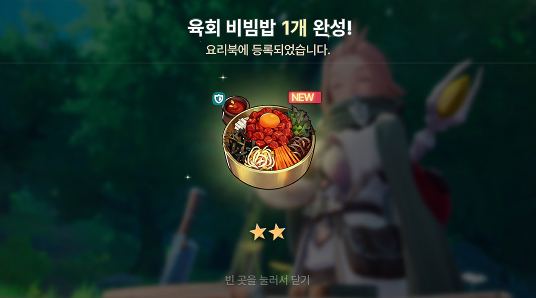 필드 위에서 자유롭게 할 수 있는 행동들 중엔 ‘요리’도 포함되어 있습니다. 판타지 콘셉트와는 또 다르게, 한국적인 색채가 많이 반영된 ‘육회비빔밥’ 같은 요리도 있어 이목을 끌기도 했는데요. 곽노찬 디렉터는 요리 방법에 맞는 결과물이 나오는 시스템을 만들기 위해 고민하다 나온 결과물이라 설명했습니다.
