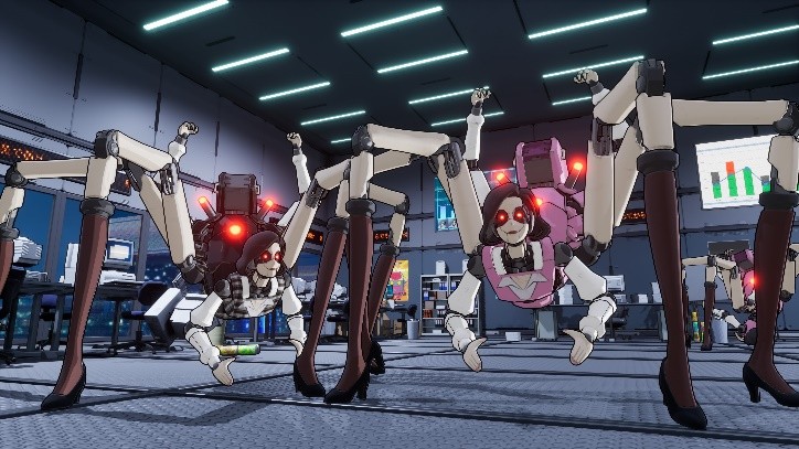 게임은 현대 사회의 블랙기업 문화를 과감하게 풍자한다. 전신이 기계로 된 여고생이 아버지의 원수를 갚기 위해 거대 블랙 기업에 난입하여 모든 것을 파괴하는 설정 자체가 현실의 불합리한 기업 문화에 대한 통쾌한 반격이다. 사무실로 쳐들어가 남김없이 쓸어버리는 쾌감을 제공한다.