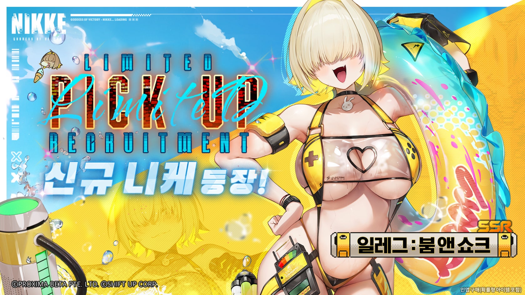 전장에 새롭게 합류하는 ‘일레그 : 붐 앤 쇼크’는 수냉 코드의 화력형 SSR 니케이다. 빙의된 유령을 포획하여 자신과 아군의 공격 능력을 강화하며, 버스트 스킬을 사용하면 포획했던 유령들을 사용하여 적에게 큰 피해를 준다. ‘니케 임시 합류 기능’을 통해, 신규 니케 ‘일레그 : 붐 앤 쇼크’를 특수 모집 진행 기간 동안 스쿼드에 임시로 합류시켜 유니온 사격장에서 미리 체험해볼 수 있다.