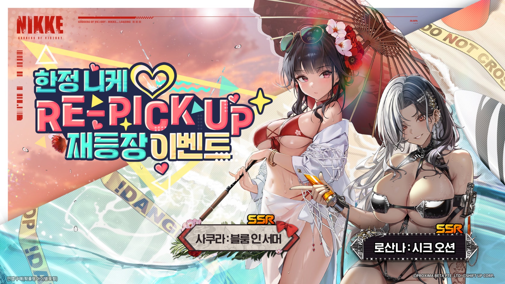 여름 한정 신규 니케뿐만 아니라, 작년 여름에 선보인 한정 니케 ‘사쿠라 : 블룸 인 서머’와 ‘로산나 : 시크 오션’이 기간 한정 모집에 재등장한다.