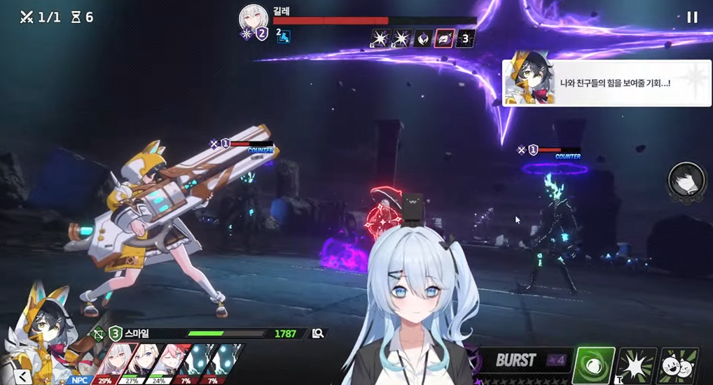 캐릭터들은 최대 3종류의 스킬을 사용할 수 있으며, 조건을 만족시키면 '버스트'를 켜서 스킬이나 캐릭터의 능력을 강화할 수 있다. 그리고 스킬을 사용하면 화려한 애니메이션 컷신을 감상할 수 있는데, 전반적으로 그 퀄리티가 굉장히 높은 것이 눈에 띈다.