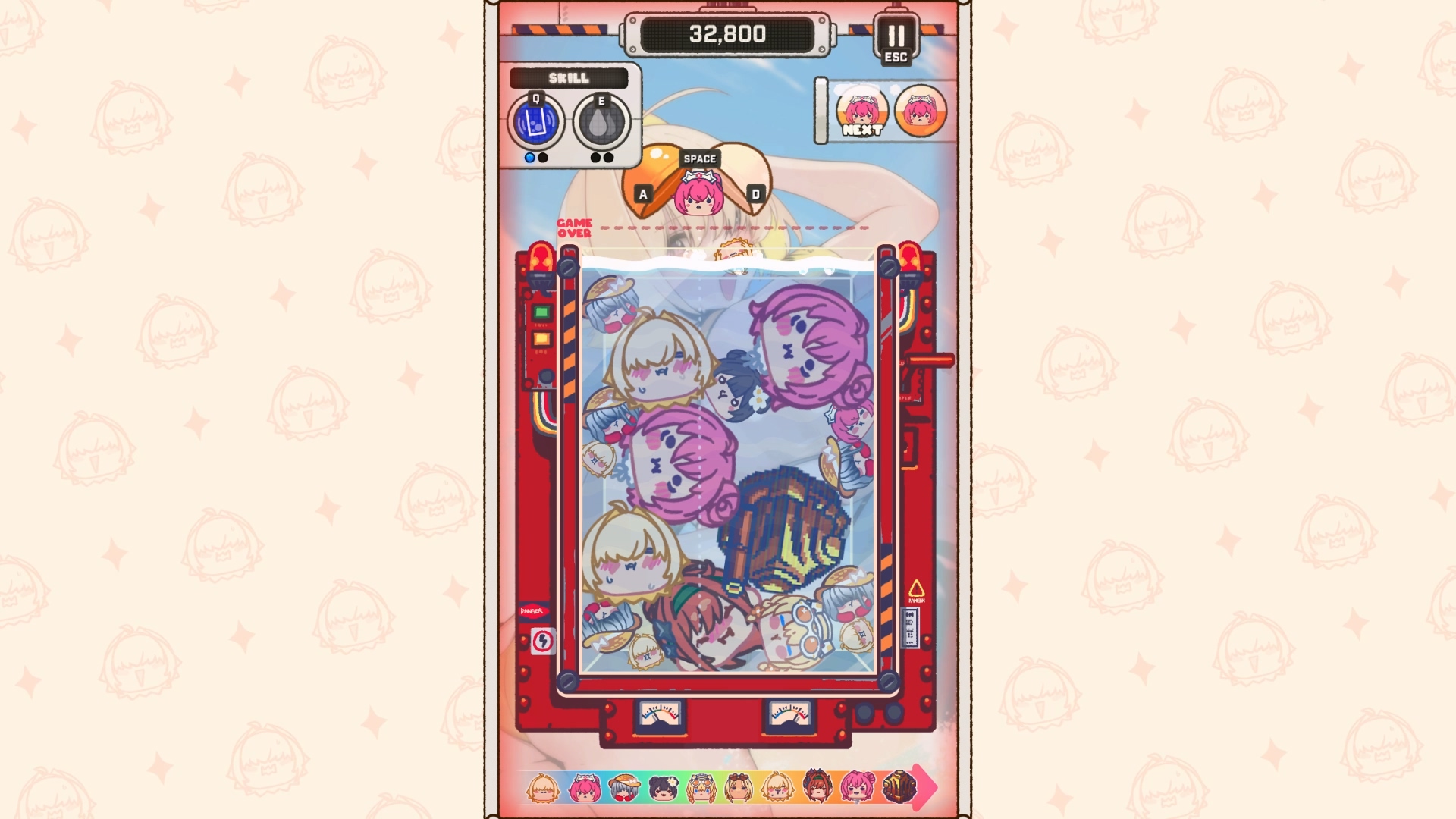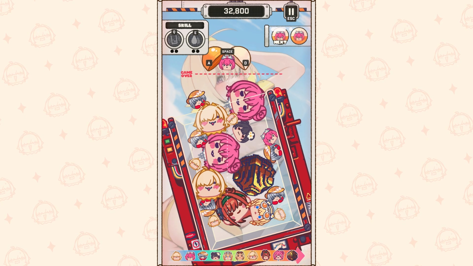 '작은 오브젝트는 작은 오브젝트대로', '큰 오브젝트는 큰 오브젝트 대로' 쌓는 것이 수박 게임의 기초지만, <승리의 여신: 니케>의 이번 미니 게임은 오브젝트가 쌓이는 통이 그렇게 크지 않기 때문에 생각만큼 '분류대로' 오브젝트가 쌓는 것이 어렵다.