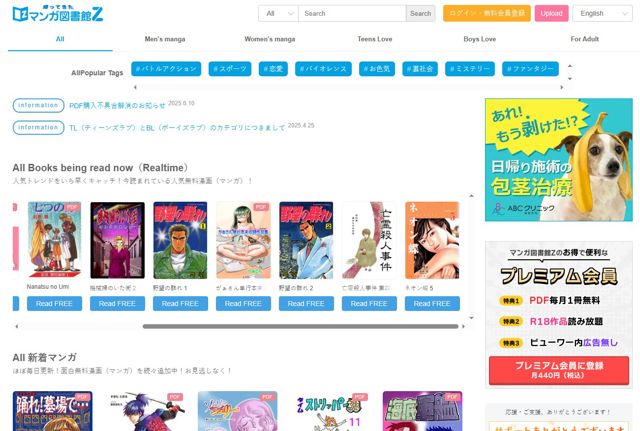 ▲ 운영을 재개한 '만화 도서관 Z'. 성인 만화도 유통되고 있다. 참고로 국내 인터넷 커뮤니티에까지 센세이셔널한 반응을 끌어냈던 <연짱 아빠>는 이 사이트에 공개됨으로써 연재 시절과 비교도 못 할 인기를 얻었다.