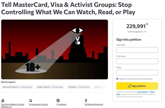 작년부터 시작해 7월 본격적으로 이슈에 오른 게임 및 콘텐츠 유통 플랫폼에서의 성인물 차단 이슈는 계속될 전망이다. 이번 차단 사태에 반대하는 사람들은 현재 마스터카드에 항의 이메일을 보내거나, 서명 운동을 진행하고 있다. 현재 결제사의 압박으로 인한 합법적인 성인 게임 차단에 반대하는 서명 운동의 참가자는 20만 명을 넘어선 상태다.
