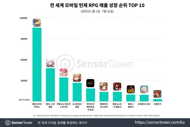 # 모바일 턴제 RPG 장르 내 매출 성장에선 글로벌 9위 기록