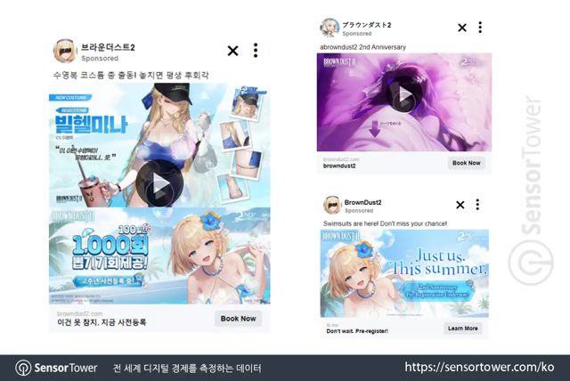 ▲ <브라운더스트 2>가 사용한 광고 소재 (자료 제공: 센서타워)