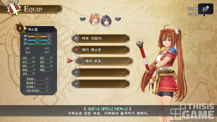 요슈아와 함께 리벨 왕국을 여행하게 되는데, 플레이어와 에스텔의 일체감이 대단합니다. 에스텔의 감동이 그대로 플레이어의 감동이 되고, 에스텔의 슬픔이 플레이어의 슬픔이 되는 극적인 전개가 펼쳐집니다.
