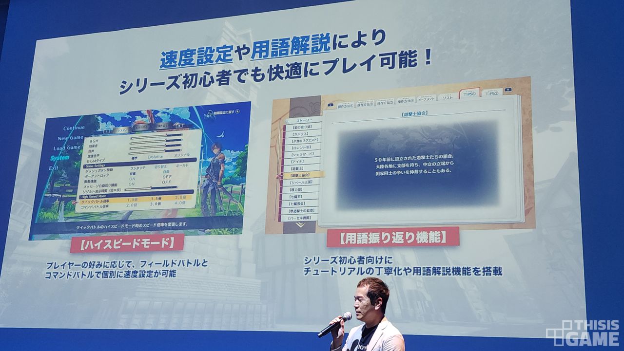 튜토리얼을 포함해, '이 정도는 알겠지'라며 안일하게 생각하던 '궤적' 시리즈 스태프들의 익숙함을 경계하며 저 자신부터 다시 점검했습니다. 이야기뿐만 아니라 게임으로서의 진입 장벽도 매우 낮게 만들었으니, 그런 점들을 꼭 주목해 주시면 좋겠습니다.