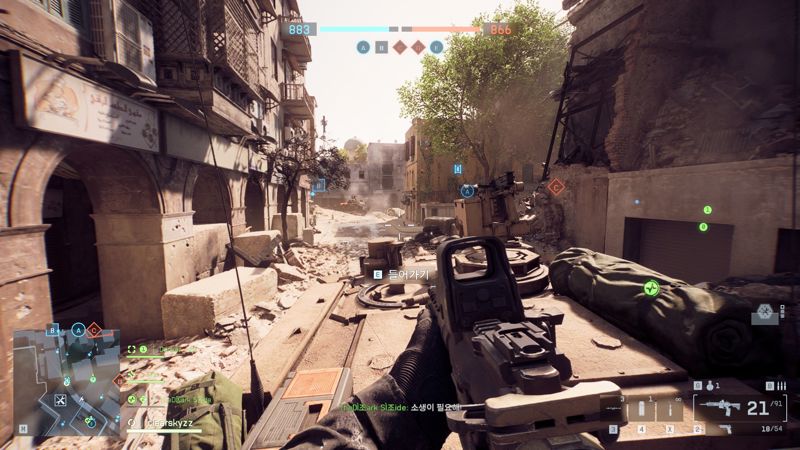 건플레이는 <콜 오브 듀티> 생각이 정말로 많이 난다. 아무래도 디렉터가 <콜 오브 듀티> 개발 경험이 있기 때문도 있겠지만, 맵의 영향이 커 보인다. <배틀필드 6>에서 보병의 움직이는 속도 자체는 <배틀필드 2042>보다 느려졌고 묵직해졌다. 그러나 이번 첫 베타에서 선보여진 세 가지 맵은 트레일러에서 '보병 난전' 임을 강조했던 것처럼 하나의 긴 전선을 유지하며 싸우는 것보다는 십자로가 연속해서 이어진 길 속에서 서로 대치하고, 우회하며 정신 없는 난전을 유도하고 있다.