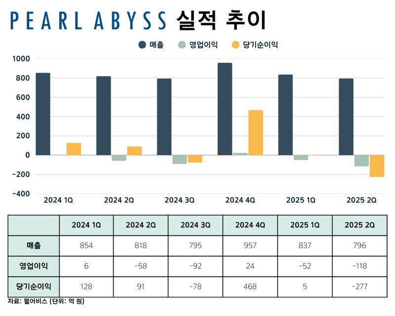 펄어비스가 13일, 2025년 2분기 실적발표를 진행했다. 펄어비스는 2분기 매출 2분기 매출 796억원, 영업손실 118억원, 당기순손실 227억원을 기록했다.