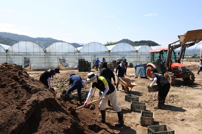 참여자들은 무더운 날씨 속에서도 구슬땀을 흘리며 침수된 농가 시설을 정비하고 폭우로 유입된 진흙과 토사를 제거하는 등 복구 작업에 최선을 다했다. 특히 농기구와 비닐하우스 내부까지 진흙이 쌓여 있어 세밀한 손작업이 요구됐으며 봉사자들은 서로의 손발을 맞추며 신속하게 복구를 진행했다.