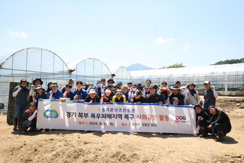 경기콘텐츠진흥원(원장 탁용석, 이하 경콘진)은 8월 12일 경기도 가평군 상면 항사리 일대에서 발생한 집중호우 피해 복구를 위해 봉사활동을 진행했다고 밝혔다. 이번 활동은 기록적인 폭우로 피해를 크게 입은 주민들에게 실질적인 도움을 제공하고 희망과 위로를 전하기 위해 마련됐다.