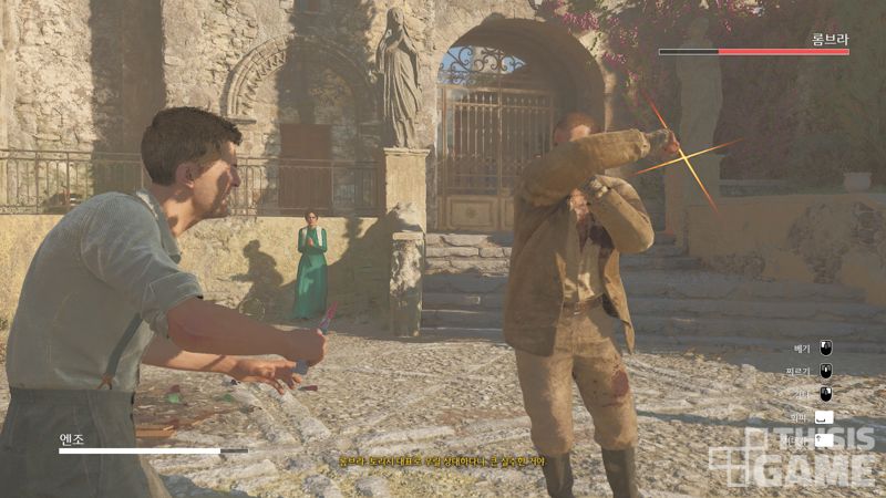 단도를 사용한 근접전은 주로 보스전에서 등장하는데, 칼을 이용한 심리전과 QTE가 결합된다. 에필로그가 되는 챕터에서 플레이어는 엔조가 아니라 엔조의 연인 이사벨라로 게임플레이를 진행하게 되는데, 최종 보스에 해당하는 돈 토리시가 아니라 보스의 오른팔인 티노를 세 페이즈에 걸쳐 무찔러야 한다.