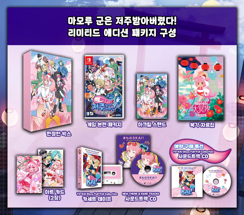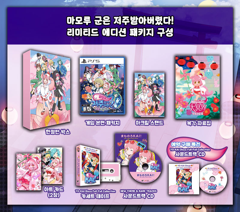 ■리미티드 에디션 패키지 구성 ●게임 본편 패키지 ●한정판 박스 ●복각 자료집 ●아트 카드 (2장) ●아크릴 스탠드 ●YO-KAI Disco Full-Full Collection 카세트 테이프 ●NEW THEME & RARE TRACKS 사운드트랙 CD