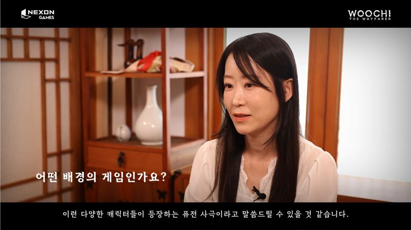 ▲ <우치 더 웨이페어러> 디렉터 인터뷰 영상강동연 디렉터와 목영미 아트 디렉터는 <우치 더 웨이페어러>가 도사 '전우치'를 소재로 한 조선 판타지 싱글플레이 액션 게임이며, 도깨비, 구미호 등 다양한 존재가 등장하는 퓨전 사극이라 소개했다.