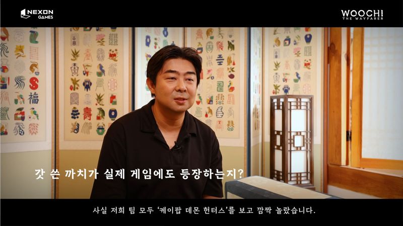 강동연 디렉터는 <케이팝 데몬 헌터스>에 대해서도 언급했다. "갓 쓴 까치는 인게임에도 등장할 예정이며, <케이팝 데몬 헌터스>를 보고 팀원들 모두 깜짝 놀랐다. 반갑기도 하고 제작진이 정말 열심히 연구하셨다는 부분에서 공감되는 포인트였다. 소재가 조금 겹치긴 하더라도 저희는 훨씬 실사에 가까운 귀여운 까치와 멋있는 범이 등장할 예정이다. 티저 영상에서 보셨던 무당 캐릭터 '묘안'도 게임에서 만나보실 수 있을 것"이라 전했다.
