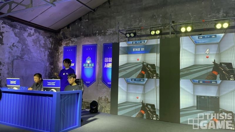 ▲ 정해진 시간 내에 최대한 많은 표적을 맞추는 에임 테스트 현장