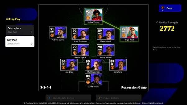 ‘링크업 플레이’는 보유한 감독에 따라 발동 조건이 다르고, 포지션과 플레이 스타일 등 특정 조건을 충족하는 두 선수를 드림 팀에 함께 영입하면 특수 연계 플레이 또는 능력치 강화 효과가 발휘된다.