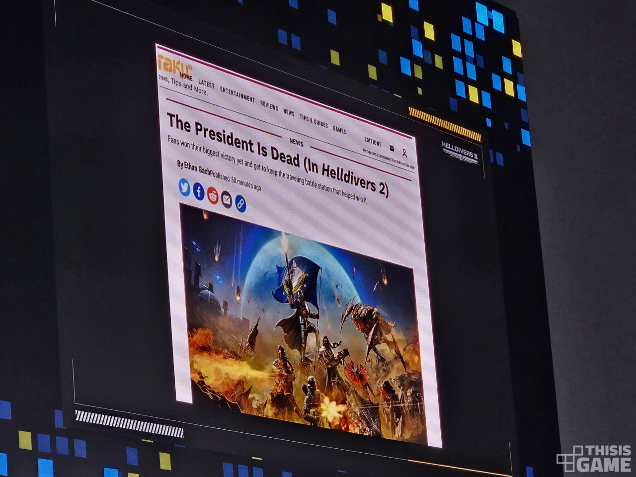 애로우헤드 스튜디오는 대통령이 방어하던 벙커에서 영웅적으로 사망했다는 내용을 담은 텍스트를 게임을 통해 발송했다. 그리고 단 하루 만에 커뮤니티의 관심은 도시 방어전에서 발생한 문제에서 대통령의 사망으로 완전히 옮겨 갔다.
