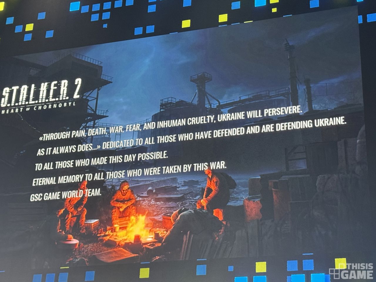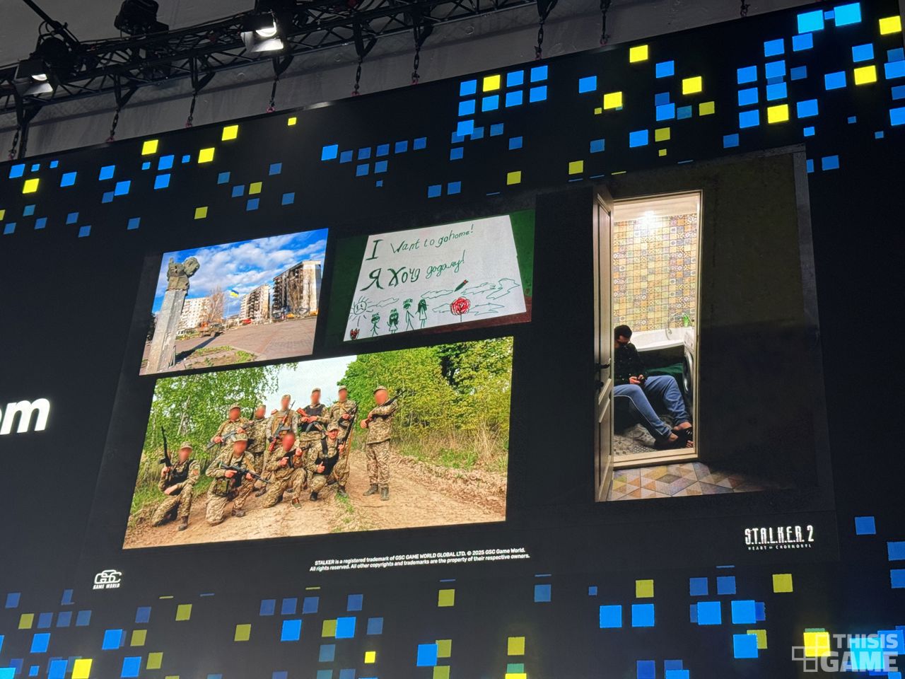 마리아는 “내러티브 디자이너, 엔지니어, QA까지 수많은 동료가 전선으로 나갔다”며, 이번 게임을 그들에게 바친다며 눈물을 훔쳤다. 발표에는 직접적으로 언급되지 않았지만, GSC 개발자와 그 주변인 중에서는 전선에서 유명을 달리한 이들이 있다.