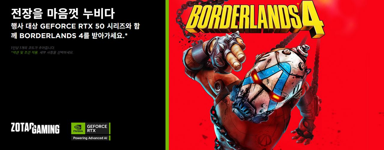 지포스 그래픽카드 전문 기업 조텍코리아(ZOTAC Korea, 대표이사 김성표, www.zotackor.com)가 엔비디아와 함께 최신 지포스 기술이 적용된 ‘보더랜드4 게임 번들 프로모션’을 진행한다.