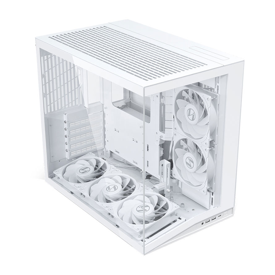 O11D MINI V2는 리안리에서 새롭게 설계한 10도 기울어진 하단 팬 트레이를 통해 공기 흐름을 효과적으로 유도하여 GPU 냉각 성능을 향상시켰다. 그래픽카드는 수직, 수평 설치 모두가 가능하며 전용 처짐 방지 브래킷을 제공해 최대 400mm 길이의 그래픽카드까지 안정적으로 지지해 준다.
