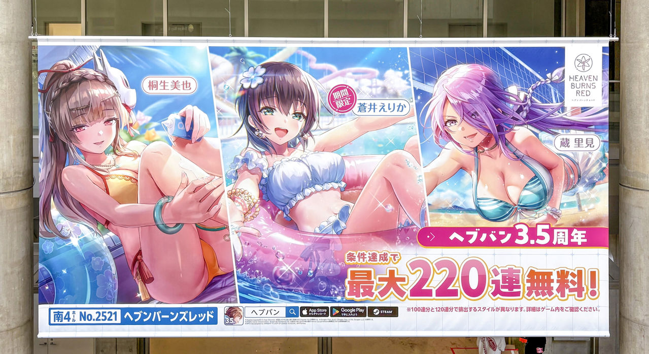 이번 여름도 부스 참가에 맞추어 린카이선 [국제 전시장역]의 역사 내 및 도쿄 빅사이트 회장 내에도 헤븐 번즈 레드의 광고를 다수 확인할 수 있었다.
