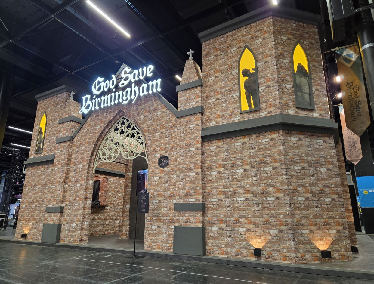 게임스컴 2025 제 10전시관에는 일반 관람객들을 대상으로 ‘갓 세이브 버밍엄’을 시연해볼 수 있는 BTC 부스, 제 2전시관에는 다양한 업계 관계자들을 대상으로 BTB 부스를 운영한다. BTC와 BTB 부스 모두 ‘갓 세이브 버밍엄’의 세계관과 분위기를 반영한 디자인으로 꾸며졌으며, 특히 BTC 부스는 중세 시대의 벽돌 건물을 형상화한 디테일을 더해 참관객들의 관심과 방문을 유도했다.