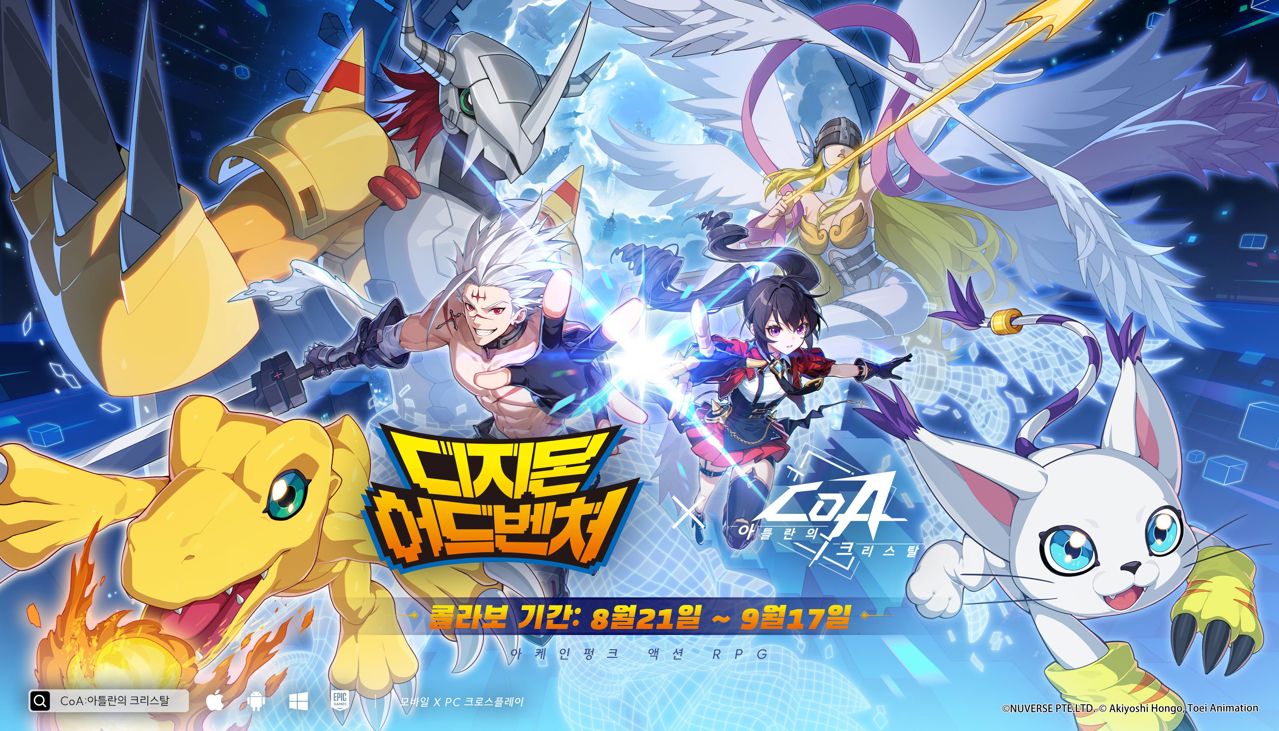 바이트댄스(ByteDance) 산하 게임사 뉴버스(Nuverse)는 자사가 서비스 중인 크로스플랫폼 액션 RPG <CoA: 아틀란의 크리스탈>이 인기 애니메이션 시리즈 <디지몬 어드벤처>와의 콜라보레이션을 진행한다고 21일 밝혔다. 이번 콜라보레이션은 9월 17일까지 이어지며, 애니메이션 속 대표 캐릭터들과 함께하는 다양한 한정 콘텐츠와 혜택을 선보인다.