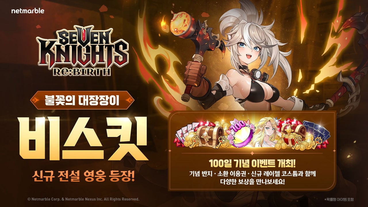 넷마블(대표 김병규)은 수집형 RPG <세븐나이츠 리버스(Seven Knights Re:Birth)>(개발사 넷마블넥서스)에 신규 영웅 ‘불꽃의 대장장이 비스킷’을 추가하는 등 업데이트를 실시했다고 21일 밝혔다.