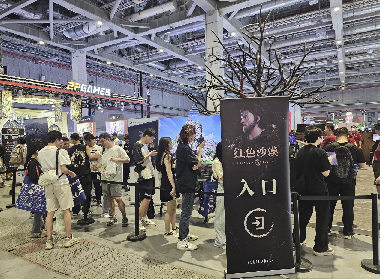 중국 관람객에게 <붉은사막>이 어필하고자 한 포인트는 세계관 속에 등장하는 주요 보스다. 입구에 사슴왕이 앉아 있는 의자와 여러 코스프레어를 비롯해, 시연존은 '헥세 마리' 전투 지역을 모티브로 꾸미고, 36대의 고사양 PC를 통해 네 보스와의 전투를 체험할 수 있도록 했다. 이에 1시간에 가까운 대기열이 부스에 몰리기도 했다.