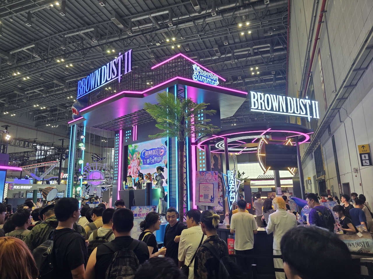 <브라운더스트 2>의 현장 부스는 네온사인과 함께 전자음악(EDM)을 즐기는 화려한 여름 밤 감성을 담아 최근 인기를 끌고 있는 여러 캐릭터와 스킨으로 꾸며졌다. 현장에서는 가챠 게임, 두더지 잡기, AR 포토 부스, 일러스트 액자 전시존 등을 마련해 관람객들에게 색다른 재미를 선사하며, 굿즈존에서는 브라운더스트2 IP를 활용한 다양한 굿즈를 전시 및 판매했다.